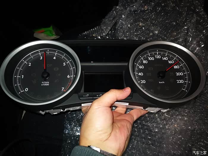 2、更换顶配彩屏仪表盘:嗯,又是淘来的宝贝,成色非常好。但想改的朋友一定要注意,这个仪表的里程一定要挑比你原车里程少的,因为他是谁的里程多显示谁的,比如你买的仪表里面里程10000,你才跑了3000,装上来它会显示10000;如果买回来的仪表历程1000,你跑了20000,那么就显示你的20000。还有就是,一定要让卖家帮你刷机,刷机了后才能显示很多东西,包括倒车雷达,车没有的档位提示等等,原车的功能全部正常,原车接头直接对插,完全一致,下面看图。