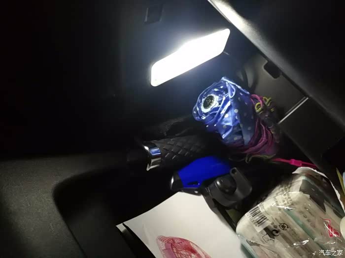 8、LED阅读灯改装效果。原车的卤素阅读小灯泡太暗了,而且开的时间长了烫手,容易烧坏内饰板,所以就把全车的阅读灯,手套箱的灯,尾箱的灯,全换成LED的,有一次后排辅助的两个阅读灯忘关了几个小时,摸上去都没什么温度!