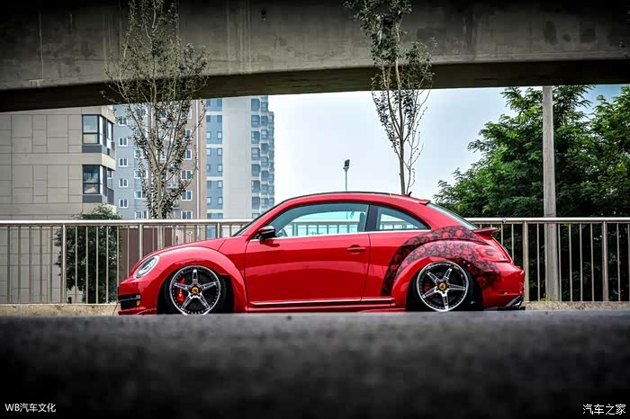 由于现行金龟车经过原厂修饰外观线条后,外型显得有些"呆萌",为了让金龟车能够变得彻底男性化,凶悍的战斗风格应该算是最好的选择,可是再看看各大厂所推出的专属空力套件,除了ABT的前保杆能获得车主青睐之外,其馀还是无法满足其改装需求,于是在这辆金龟车的身上便有了M3的侧裙、Ferrari Hamann侧裙角和Scirocco R的后保杆。当然仅仅这些依然是不够战斗化,因此车主凭藉极强的手工及拥有自家工厂生产的便利性,完全量身订製的碳纤维前下扰流与后下分流器应运而生,配合Ferrari F360的19吋三片式轮圈和恰到好处的骷髅头车身彩绘,虽然并不像竞技风格那般极致与夸张,但总算达到了预期的设想。
