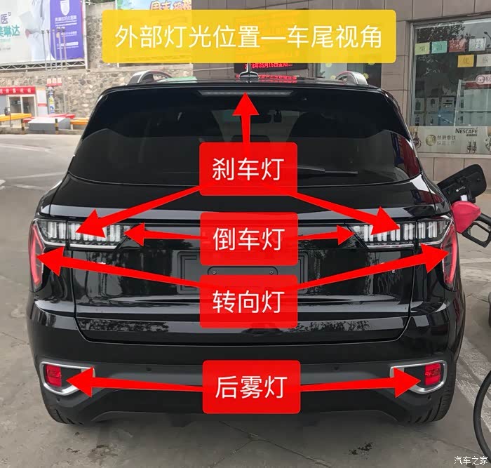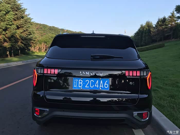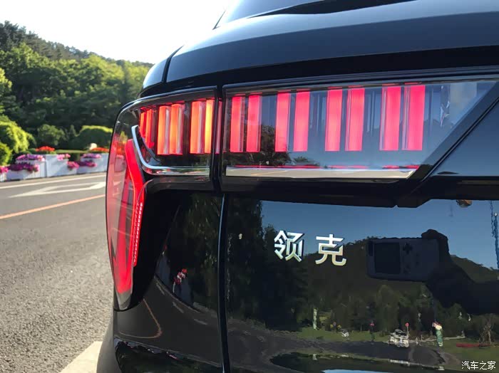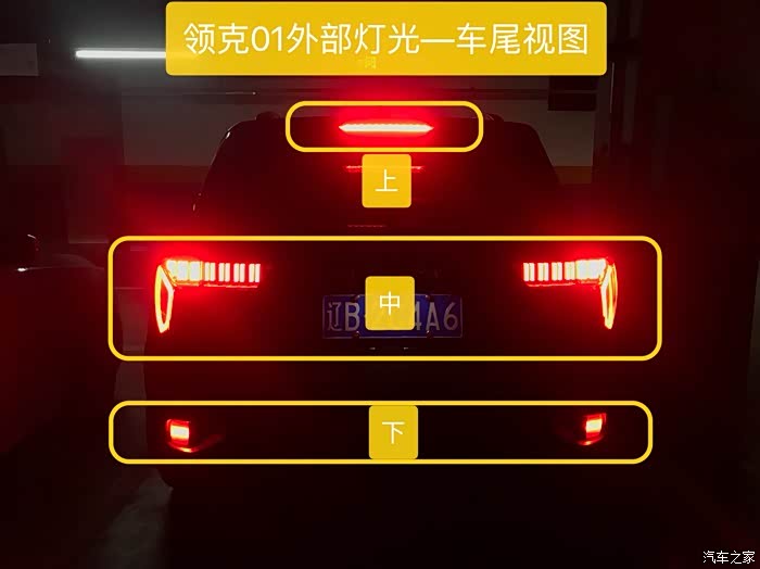 从车辆正后方看,领克的车灯也是分为上、中、下,三组布局。