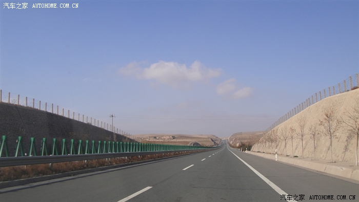 3.延安-宁夏银川,一路黄土高坡的景色,直到过了靖边,景色就大不相同了,一马平川,跑起来非常爽,遗憾的是这么好的路在陕西境内限速100,宁夏境内就好些限速120,狂奔呀!这里要提醒下,北方地区车辆喷水要加-10度以下的,我的喷水在早上出延安的时候一喷上去直接结成冰,很恐怖,把我吓了一跳,冷却液也一定不能加水的哟,否则你就惨了。