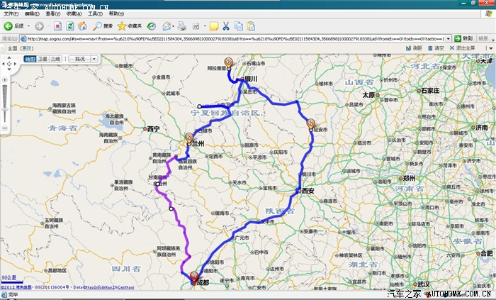6.甘肃兰州-成都,兰州-成都目前最近的路是走临夏-合作-碌曲-四川的若尔盖,重点说下这条路,原以为是山区道路非常难走,其实大错特错,此线路非常好走,沥青路面,线形非常好,限速80,跑个100也没问题,车少,人少,景色美的让你一路不惜按下快门,是自驾者的天堂,10月下旬兰州-临夏为高速路段,山上要下雪(开始看见下雪把我吓一跳,以为今天这样的路开不到四川的若尔盖),翻过山气候就好了,后面的温度太阳一出来又热的很,临夏-合作的高速公路正在修建,出临夏后就是自驾者的天堂了,慢慢开吧,一路景色无限。值得说一下的是如果晚上住四川的若尔盖,会有高原反应的可能,海拔3500,我就头痛,到第二天才缓解,本次旅行最高海拔为3850,小塞欧很争气,在高原上仍然动力充沛,和平原没什么两样,非常满意。在高原地区请带上除冰铲,早上起来的时候前挡风玻璃上面结了一层冰,好久才把它除掉,别用冷水哟,撒上去直接变成冰,太烫的水也不行哟,小心玻璃炸掉。