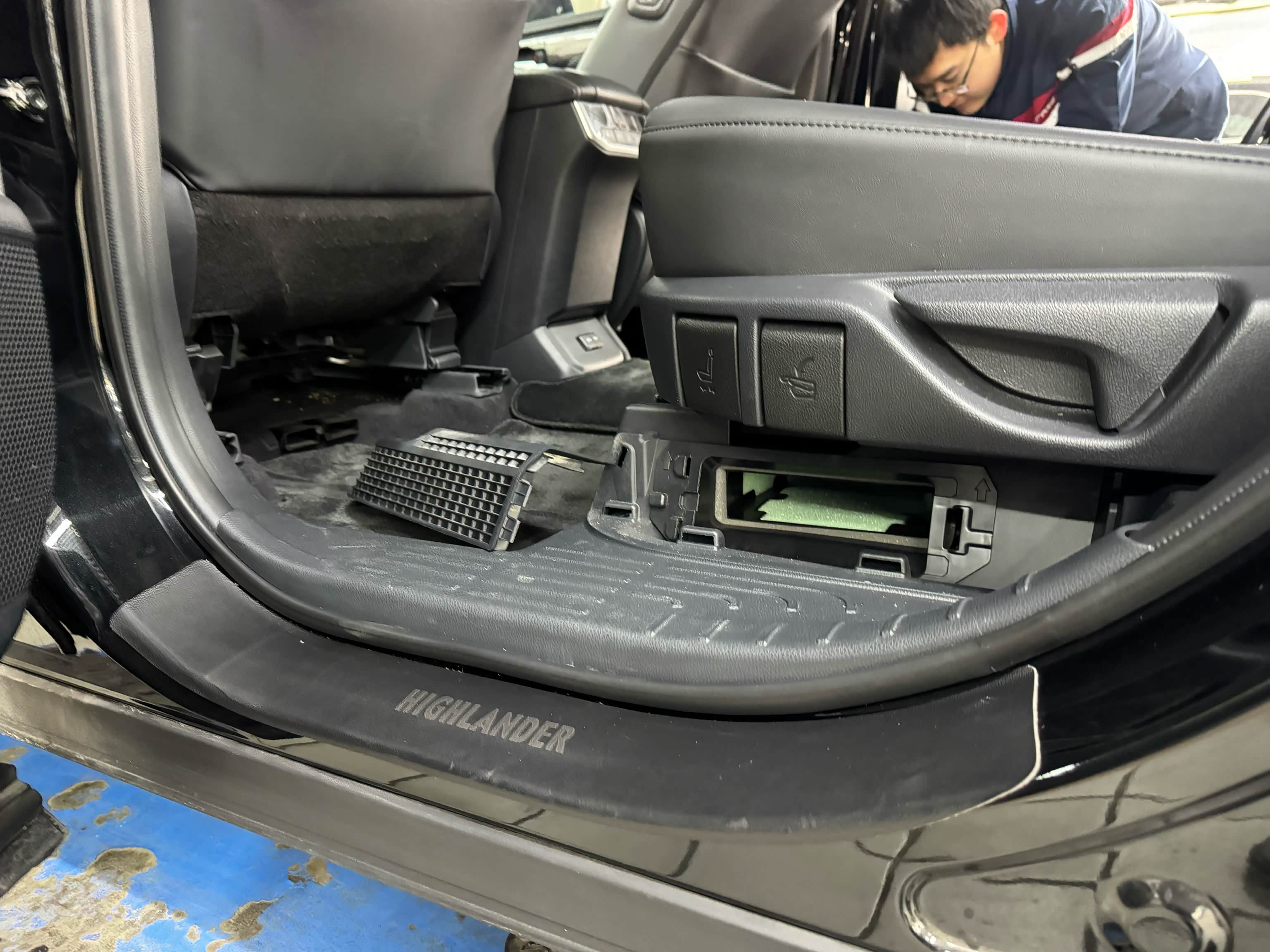 虽然没有到时间,也让师傅吹了两个电池滤芯,在第二排座椅侧面,盖子拿螺丝刀撬一下就下来。