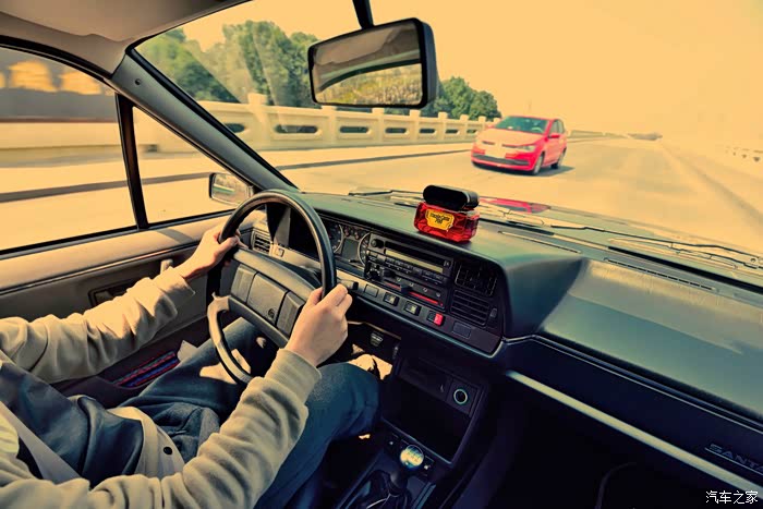 这是一辆朋友收购的二手车,车况很不错,对于我这个从2002年拿到驾照就靠普桑练手并且有着10多万公里的普桑驾驶经验的人来说,对这部车的驾驭,真是太得心应手了,但是说实话,电喷时代的大众真的没以前化油器时代那种油门的灵敏度了,四档的老桑,多少人二挡起步、三档超车时有着现在流行的那句,二挡7300干它的心情!(BRZ/86)。大众的手排档多少还是保留了原有的手感。方向盘,就要那种细细边的,背部有握指槽,抓握感没那么强,但是盘子大,原地搓盘也还算好内抄,是吧?!!正常驾驶就是竖握空心大脸盆那种感觉。开关,哎呀!方的,各种方的,中控台三挡式拨位开关,拉杆式空调出风调节、CD机按键。风量调节拨钮开关、远近光切换开关、转向灯开关、雨刮开关清脆的调节声,都是那个年代才有的。灯光那是各种黄,各种卤素,雨刮器刮过玻璃吱嘎的响声,高档低转速齿轮啮合的传动声在车里回荡,机械拉簧的手刹,不按钮松不掉手刹,谁斜坡上驻车手劲儿大来一下绝对给下一个松开它的人“吃药”。倒挡在六档位置算是改进了不少了,老四档要是来个密集路口掉头回把轮你试试,老手都很容易出打齿声,大三角版方向盘的停车搓几把盘能让你知道自己手臂力量是那么弱小,开旧了还跑偏,斜捧着盘子直走是常有的事儿。开空调能让你感受到刹车踏板顶脚,那是告诉你什么时候压缩机工作了。电喷的这代没有方向盘左下角的风门开关了,那玩儿冬天冷车启动有的摆弄了,我以前还给拉断了,后来冬天冷启动就靠拽那根杆儿了。没中控的年代靠钥匙开门被静电电过的不少吧哈哈,进车后拽三个门锁拉头的事大家也都历历在目吧。此车还保留了前排座椅旋转式靠背调节钮,告诉你,转到躺平,你手酸的睡不着!转回来?哪位大哥帮帮我,我手残了————,要歇一会。我打赌你被绑架到普桑,蒙着眼都能听出来那关门声。还会用手摇窗么?驾驶位仁兄,您老个儿高不高,手长不长,系上保险带给摇一下副驾驶的手摇窗试试就知道了,这装备现在没了哈哈。要是你不是老司机,油箱盖那把锁开起来还真要摆弄一下,拽住了只转锁中央,要不然等你打开,后面加油队伍排老长了!