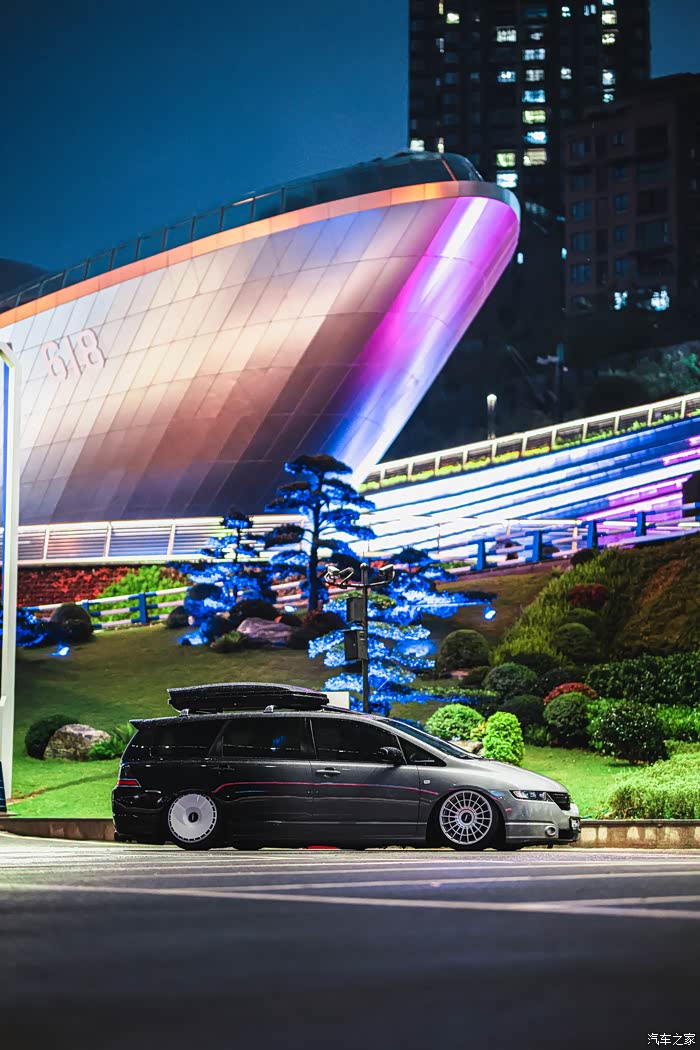 这台车是我朋友的,老款奥德赛,贴了改色膜,美国rotiform轮毂,后轮装了turbo fans(轮毂罩),还有3H Airlift气动,内饰他做了彩绘,但是这次我没拍,哈哈哈,这台车长得本来就很JDM,其实就这样简单改一下素素的挺好看