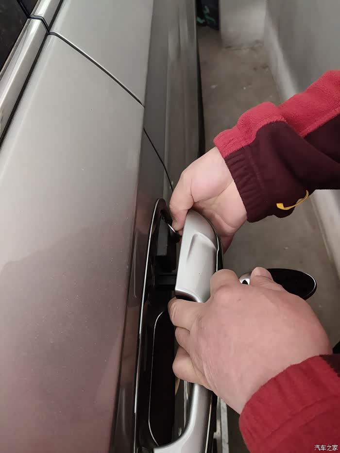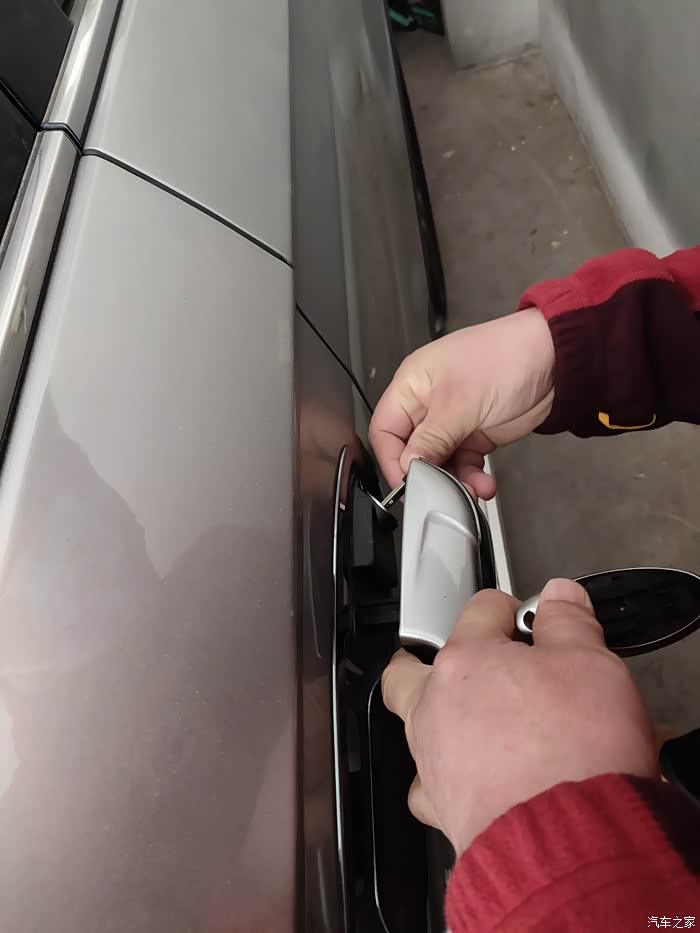 接下来 来到车子的主驾驶位置拉开门把手这时候 机械钥匙孔就会映入眼帘