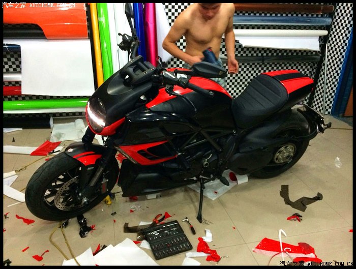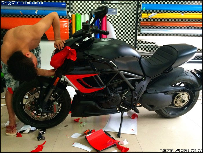 黑色的魔鬼对我来说有点太猛了,我怕hold不住,带他去做个拉花,装点杜卡迪红活跃活跃,参照的amg版的拉花,效果挺不错的