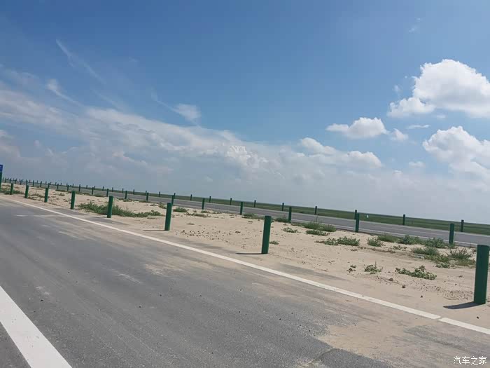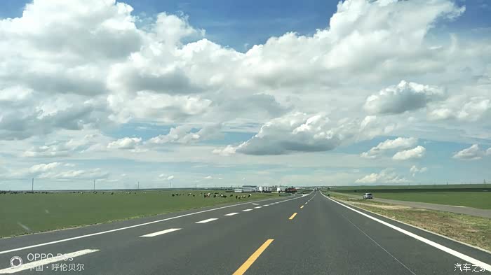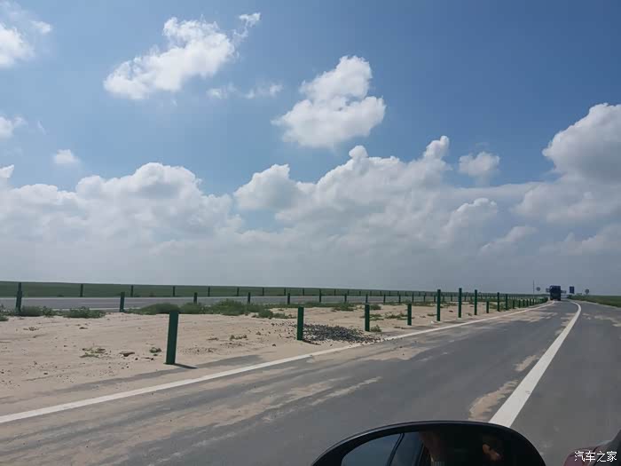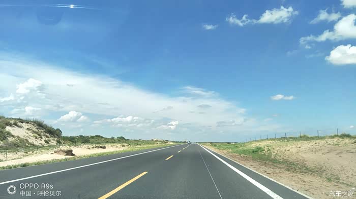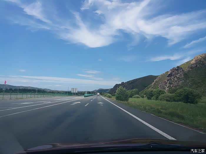 这段路上车辆真的很少,经常一两个小时就我这一个车在独自穿行,放眼望去一马平川,直看天际,大段的路上路两边除了草连个凸起物都没有,就像到了无人区,时不时的就会冒出些许苍凉之感