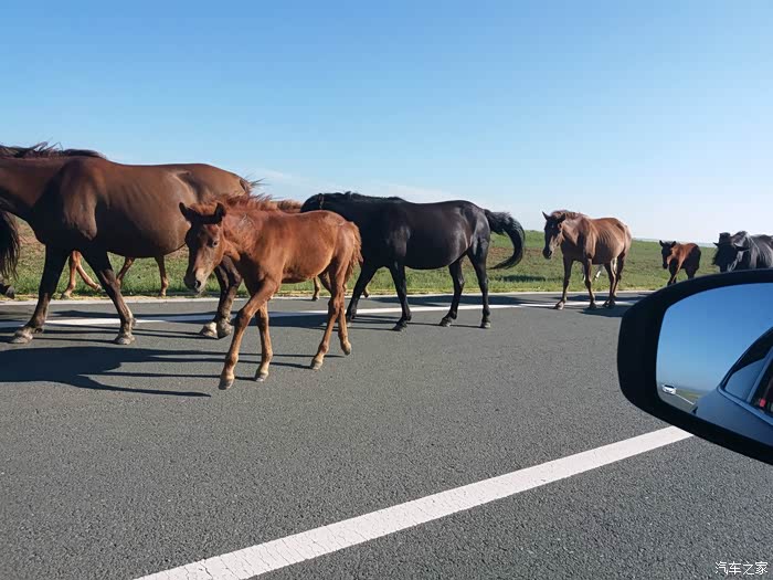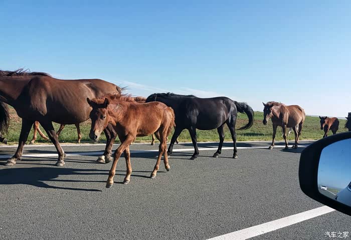路遇大量马群自己个在路上溜达,也没看到有人管