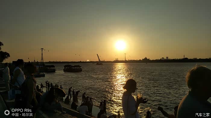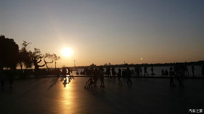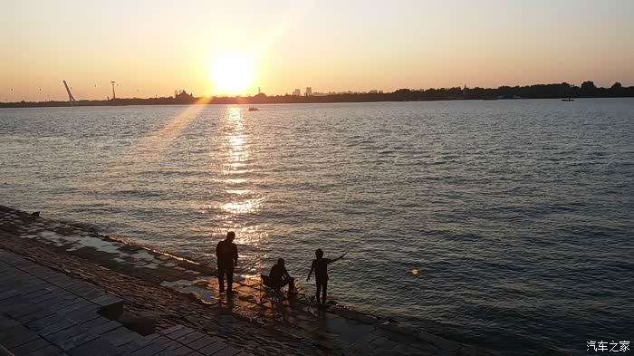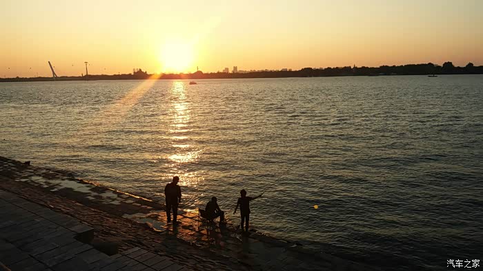整个岸边甚至街道都被夕阳映照的金光灿灿