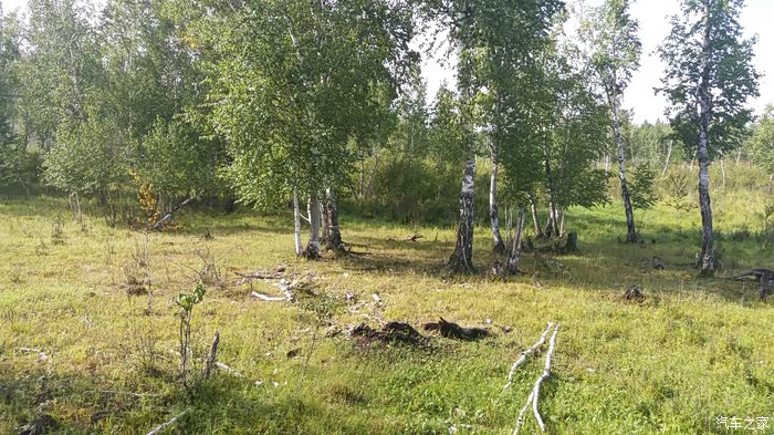 林区很大,也没个人毛,太深了不敢去,踏着湿漉漉的草地在边上溜达溜达也不错,很原始的味道