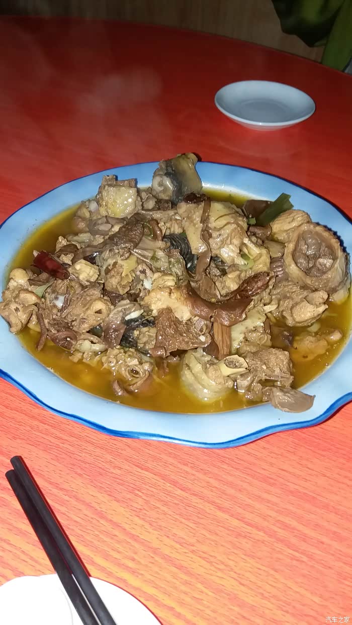 ,不过这怎么看也不像小鸡,土鸡到可以肯定,油老大了,仨人可着劲也没吃完,挺贵的不要了又可惜,和老板商量了一下,放冰箱里,明早热热再烙俩饼继续吃