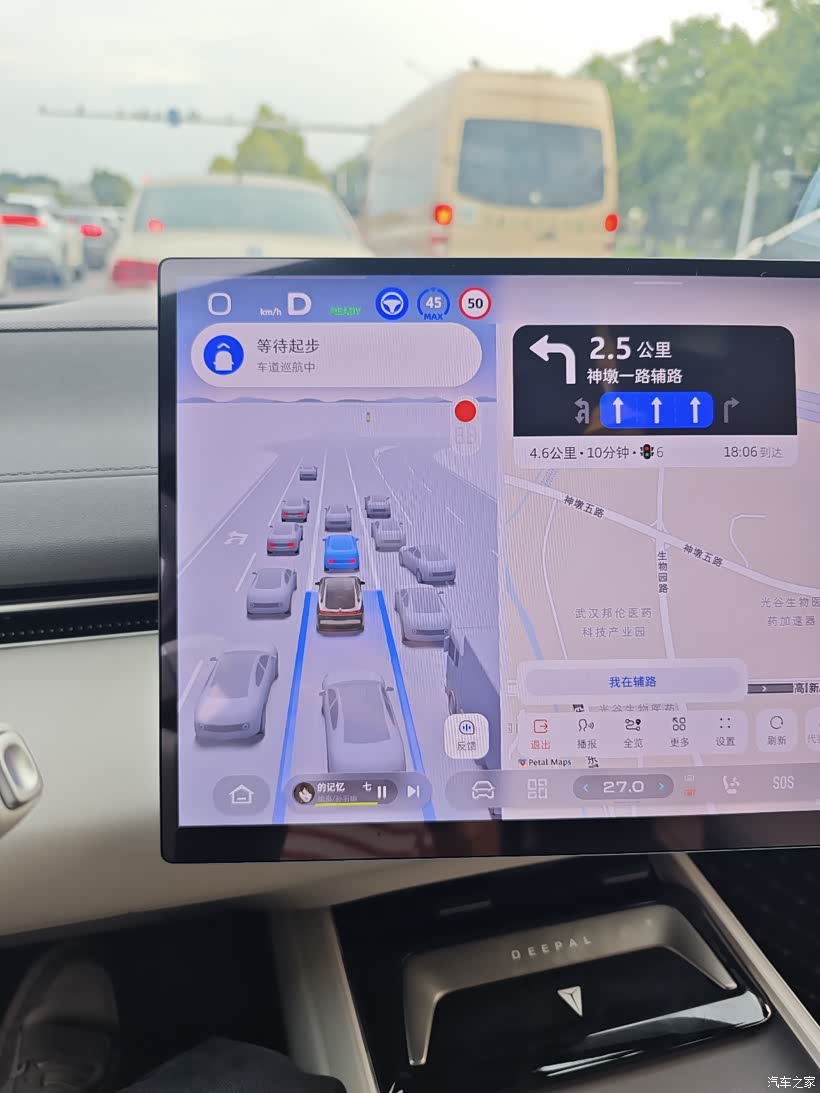 首先在高速上,开启导航辅助后,它下匝道特别像老司机。差不多离出口还有两公里左右,就开始提前往最右车道并线了,整个过程很顺,不会到最后一刻才慌忙变道。进了匝道遇到大弯,它自己会稍微降点速,方向也控得稳,坐在车里不会觉得晃。