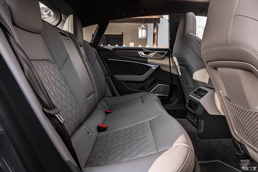 Cici说后排的感受其实都是听朋友说如何如何,自己其实还没体验过,我说无妨,正好我来体验奥迪A7的动态驾驶感受,让Cici来体验后排。Cici一坐进后排,还是表示这空间要比想象中大不少,而且其实头部的空间也比较宽裕,并没有因为是溜背的设计而牺牲很多,整个座椅的贴合度和大腿的承托性,它的表现都不输于前排,说到这,我必须要补一句,奥迪A7的轴距可是有着2928mm长,后排的纵向深度表现还是不错的。另外她才发现奥迪A7的后排也是有独立空调的,所以舒适性方面的表现是真的不错。