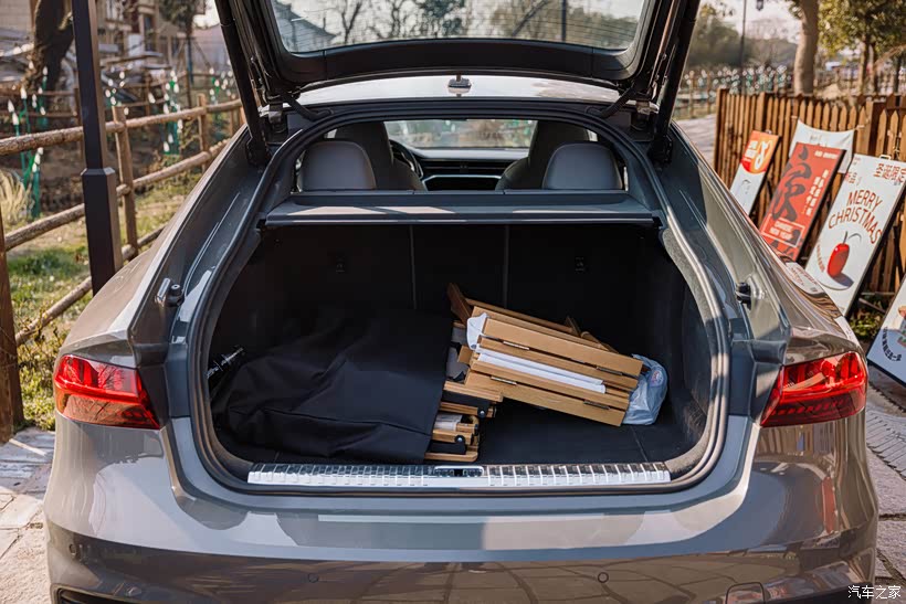 后备厢的使用Cici是更有心得了,因为在买车之后奥迪A7还充当过好几次搬东西的好能手,在她看来,掀背式尾门最大的好处有两点,一个是打开之后,后备厢里有什么东西都能一览无余,不像其他轿车或者是SUV,后备厢里要找些什么东西,差不多是要把里面东西掏空了才能找到,另一点就是放取东西方便,因为开口足够的大,所以放东西更轻松。总而言之,掀背式的设计是看着有颜值,实用性的表现也是非常的出色。