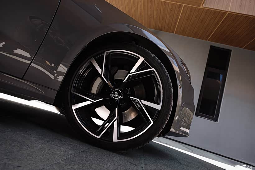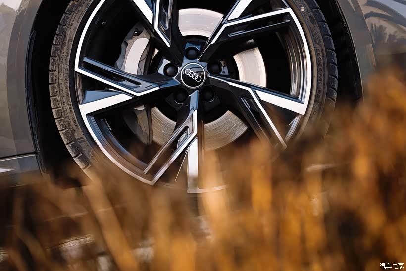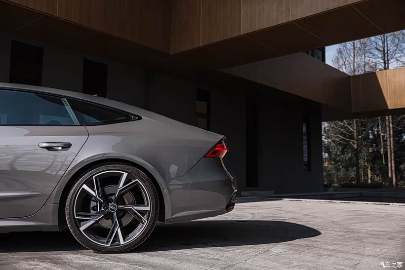 相比于车头,侧面能说的点则更多了,首先就是轮毂,因为Cici购买的这台还是顶配3.0T的A7,所以其轮毂是采用了相比普通版更运动的21英寸5幅Audi Sport轮圈,巨大的尺寸以及极低的扁平比,看着就让人很有驾驶的欲望,不过大家也不用担心这么低的扁平率会不会影响舒适性,在我体验过后可以明确告诉大家不用担心,因为Cici的这台A7还是搭载了自适应空气悬挂,运动、舒适和外观颜值兼并,用车迷的话来说就是“无懈可击!”