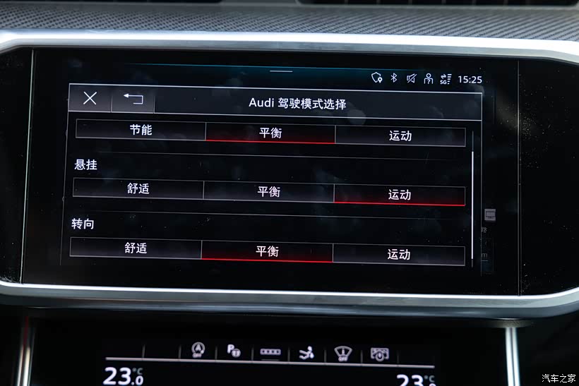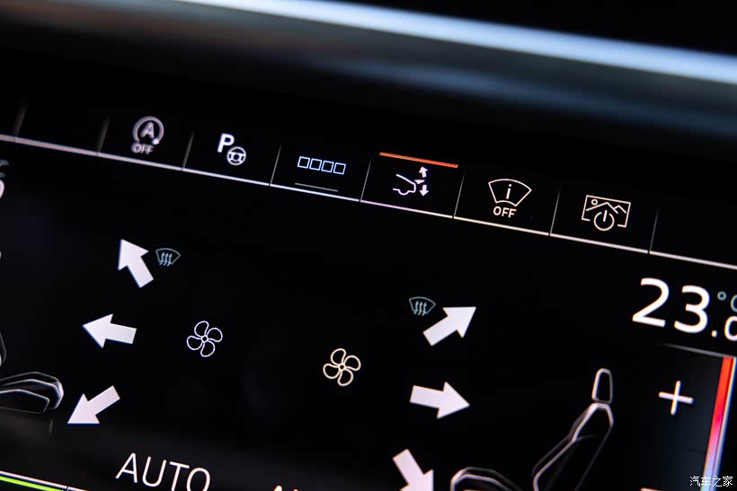 在多媒体下方的8.6英寸的触控面板是Cici使用的比较勤快的,因为她会根据心情来切换驾驶模式包括还有空调温度的调整,如果副驾有朋友乘坐,也会很大概率来操作这个屏幕。但几乎所有朋友上来都会被这个操作给震惊一下,因为当你用手指去触碰的时候屏幕会给予震动的反馈,这应该只有奥迪才会这样,Cici说这个感觉还挺奇妙的,会给人一种比较强的科技感,让你觉得机器不是冰冷的,它是能给你回馈的。