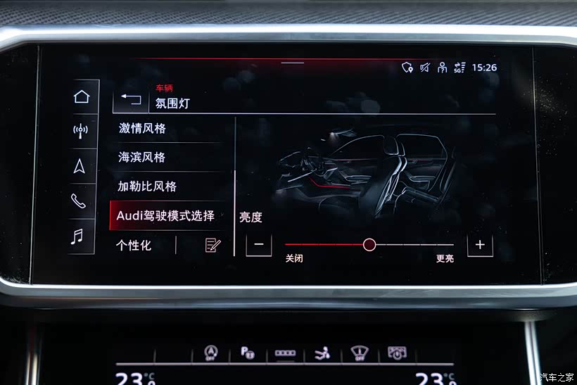在中间的多媒体屏幕上,她因为使用的是苹果手机,所以更多的就是用Carplay功能。不过,根据我的体验,其实奥迪这套最新的MMI系统自身就具备了很多的功能,例如天气预报、在线音乐以及很多多媒体功能,就算不与手机相连,它自带的功能也是相当的丰富。说起在播放音乐这一块,A7的B&O音响的音质可是太棒了,Cici也坦言她家里用的也是这个牌子的家庭音响,真是巧了,看来她选这车是真选对了!