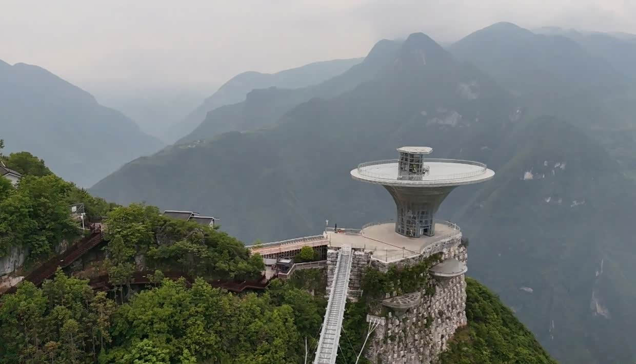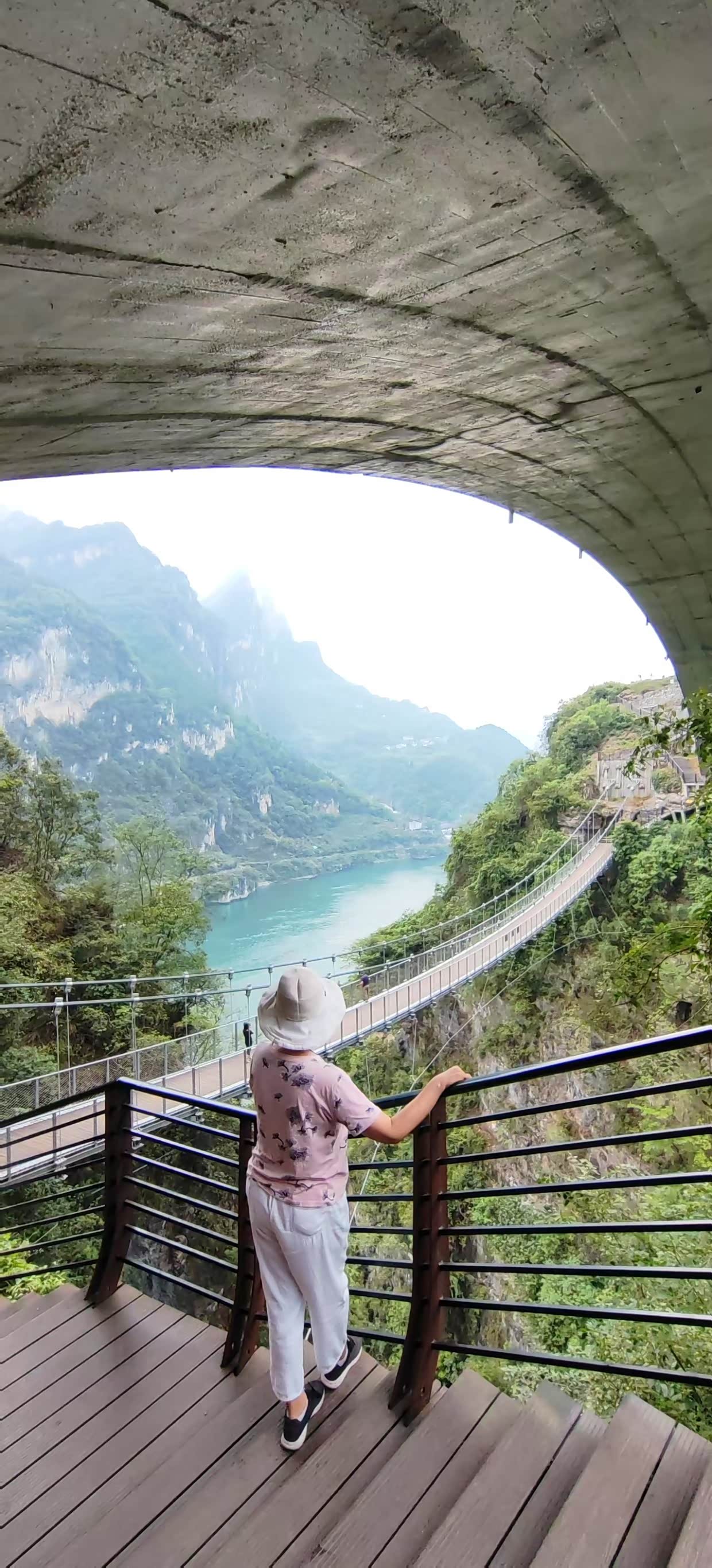 “干沟子桥”观景台。一定要体验这座超长依山而建的吊桥!双桥共建,形如星空之“眼”,走在上面,仿佛能触摸到天空。