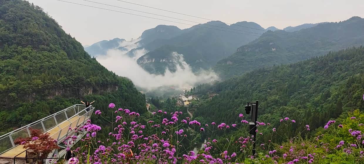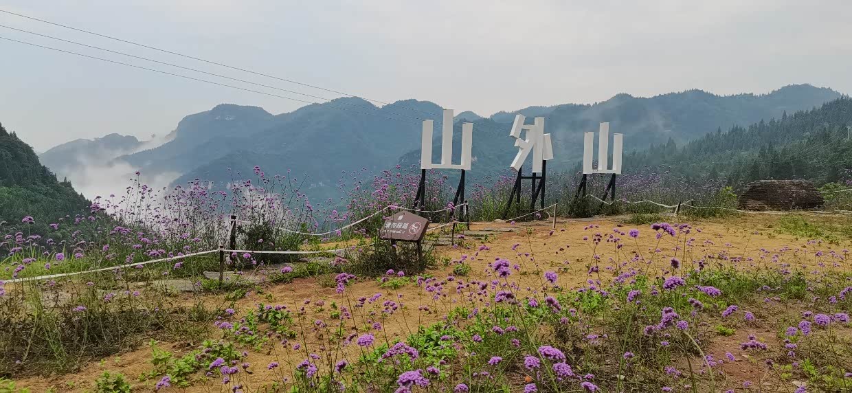 “山外山”观景台。与听风谷相似,但这里的溪流和人家更添一份生活气息。花海、鸟鸣,仿佛置身于自然之中。