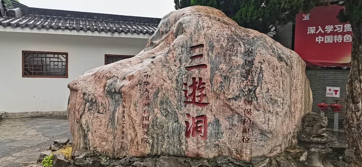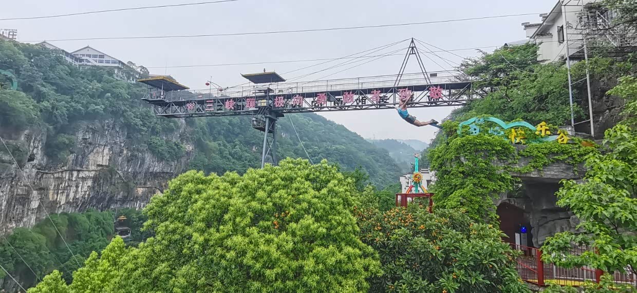 今天第一个景区三游洞,三游洞风景区位于西陵峡外,距宜昌10公里左右。三游洞的名字有两个典故,唐代诗人白居易、白行简、元稹三个人曾一同游过此洞,人称“前三游”;到宋代,苏洵、苏轼、苏辙父子三人也一同来游过此洞,人称为“后三游”。 三游洞风景区内主要景点有三游洞、至喜亭、楚塞楼、古军垒遗址、张飞擂鼓台、陆游泉等。三游洞旁边有三峡蹦极,年轻人比较喜欢。