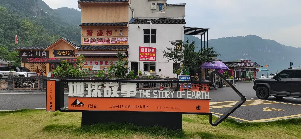 西陵峡的0.618服务区,不仅是科普游学的核心区域,更是一个充满地质科普主题的公园。这里,你可以看到巨大的古杯化石,它们静静地诉说着地球的变迁。