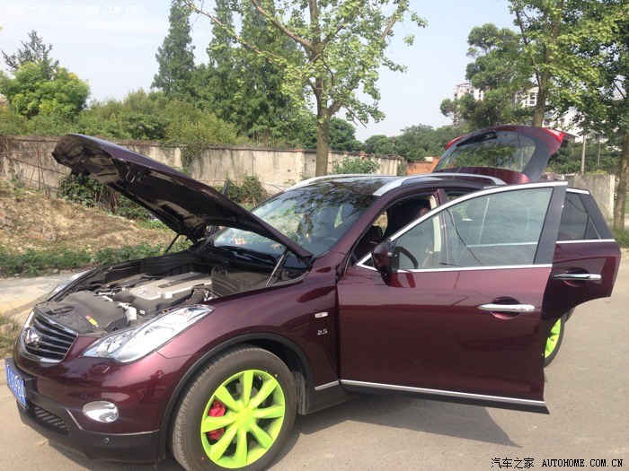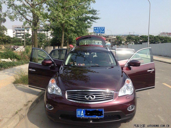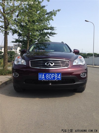 各位车友本人是90后, 家庭的主要劳动力输出, 大学毕业3年了, 期间开过POLo, 去年5月买了一辆莲花L3, 开到国庆换了荣威550. 今年5月又换了QX50. 入手QX50, 真的必须要说下这个艰难的过程. 本来一直是看的奔驰GLK300. 到了4S, 没车, 等3个月吧, 奔驰旁边是奥迪看了Q5, 靠! 进4S, 大约10多分钟没人理, 果断闪人了! (必须吐槽一下, 蜀西路的华星名世奥迪, ) 说真的奥迪我真没看起过! 公司的新款A6L, 我都不想坐. 好吧, 旁边是宝马, 进去瞧瞧吧, 老婆跟父母的意见一直是叫我直接上X5! 好贵的!! 看了X3, 优惠不大, 价格高了, 主要是不实在! 好吧, 宝马旁边是路虎, 极光2014款裸车54, 差点交定金了都, 结果, 老婆说再看看, 旁边都运通英飞, 一进展厅我就看中小鹰, 大爱暮红色阿!
