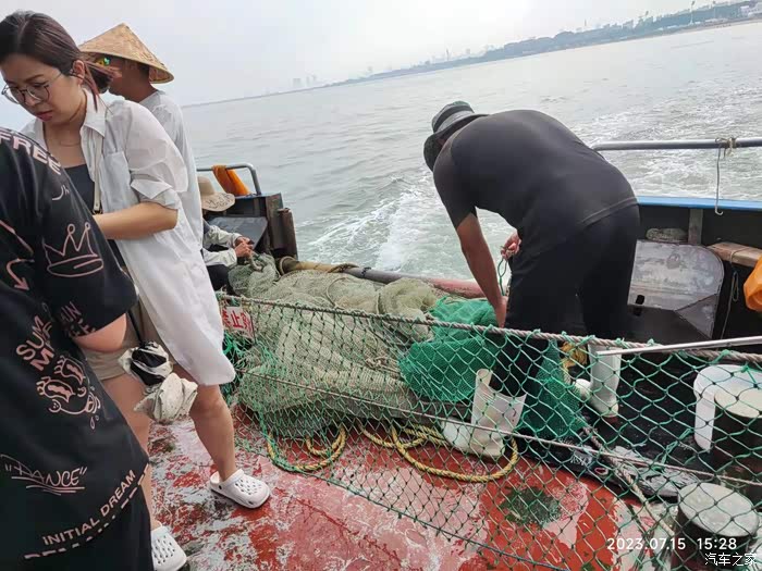 第二天一早5点多就去海边赶海看日出,可惜起的晚了,日出没看到,在海边走走沙滩,捡些贝壳也是蛮舒服的。8点多吃过早餐后,大家集体到停车场开上车沿着碧海路进行合影留念,随后就自由活动了。我们一家三口去的是任家台,那里有木质或铁质的大渔船,看着相当震撼。期间还去了趟海鲜市场,买了孩子最喜欢吃的鱿鱼丝。这里忠告大家,海鲜市场的东西要比夜市的便宜一些。中午在一顿丰盛的海鲜大餐后,我们又集体开上车由飞哥带队到桃花岛码头登船出海打捞,体验游轮的感受。打捞结束后,到码头周边的海滩上接着游玩。晚饭后,到夜市随便转转买了一些贝壳制作的小工艺品。
