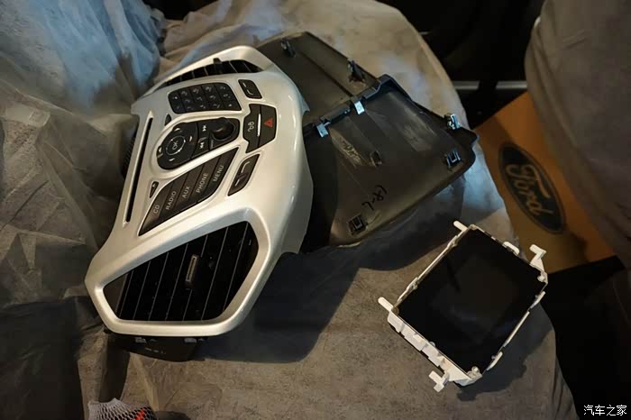 大屏也安装完了,用力砸进中控台,对,是砸进去的。