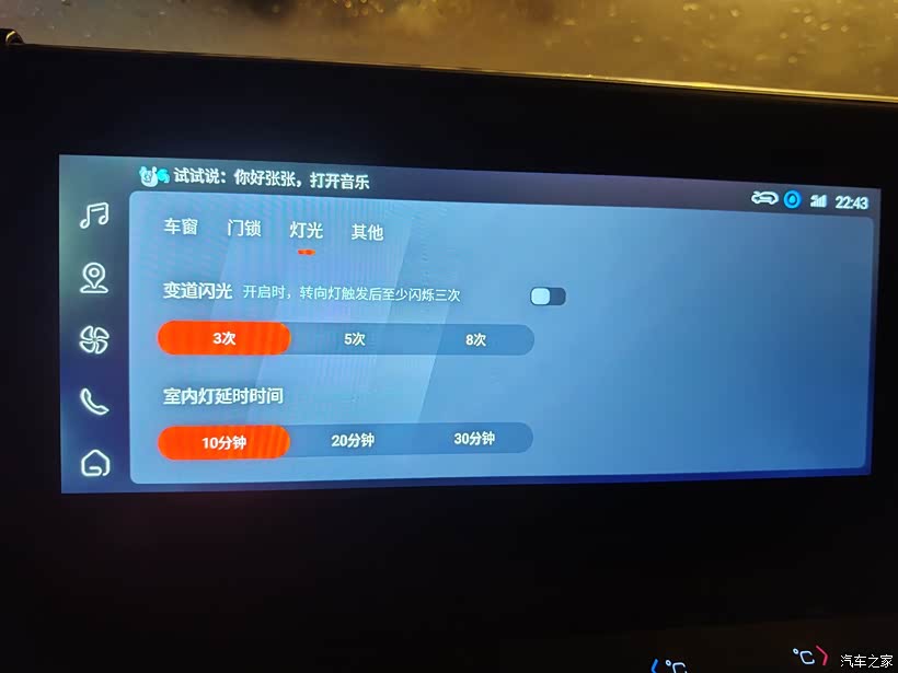 3.变道闪光默认三次,无需调节,开启调节5次/8次,变道闪光会失灵。(这种系统的操作,能不动尽量别动)
