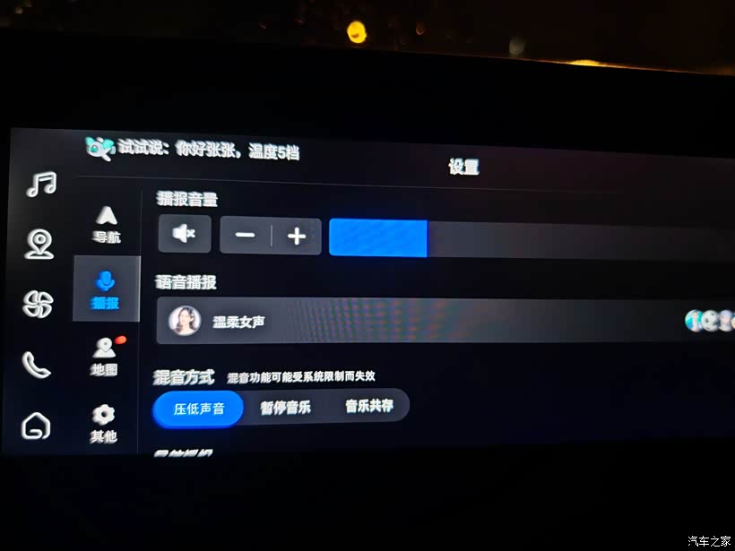 调节“音频通道”后可以调出声音,但截止目前不能自由调节音量大小,播报压低声音/暂停音乐不可用,除非调整至和音乐APP同样的通道(笔者测试14通道可以),但这样一旦关闭了音乐,那么高德地图也没声了。我个人倾向于调出声音就行。设置中可以手动调节道德音量大小。平常我也不调。有声音就够用。