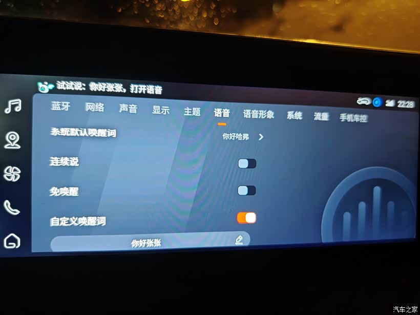 语音助手可自定义唤醒词,不用像宝骏一样,必须要投屏才行。测试好用。