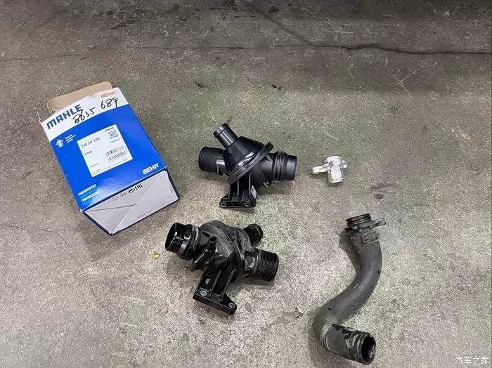 除了涡轮管路,另一个关乎发动机健康的核心部件是节温器。它如同发动机的“恒温空调”,一旦失灵,会导致水温异常,或升温过慢增加磨损,或“开锅”过热拉缸。本次选择原厂配套的马勒节温器,确保了温度控制的精确与稳定,保障了发动机长期工作在最佳温度区间。