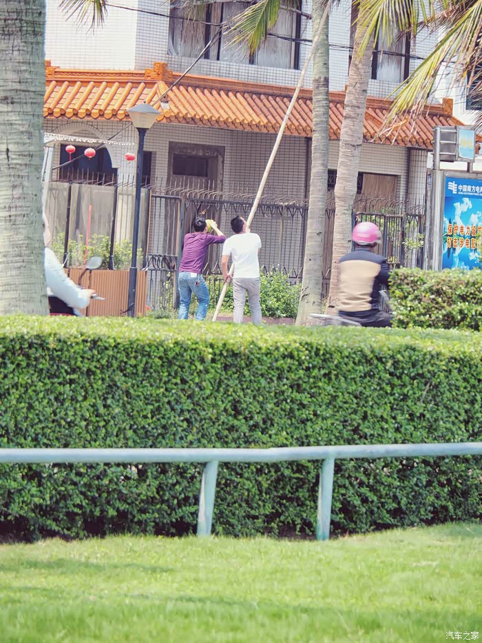所谓靠山吃山,靠近椰树就捅椰子吃吧。远远的看到马路对面有人正在用长竹竿捅树上的椰子。从工具到手法都如此娴熟,只见他三下五除二便把一个椰子捅落。