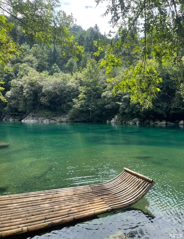 一张竹排停于水潭之上,有一丝小桥流水人家的味道,又有一丝小舟浮水轻如燕,荡漾波涛眉间颦的感觉。