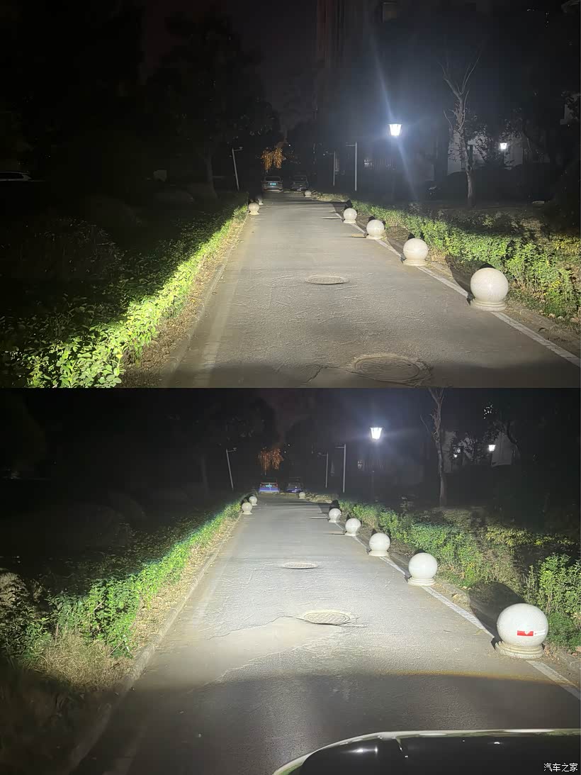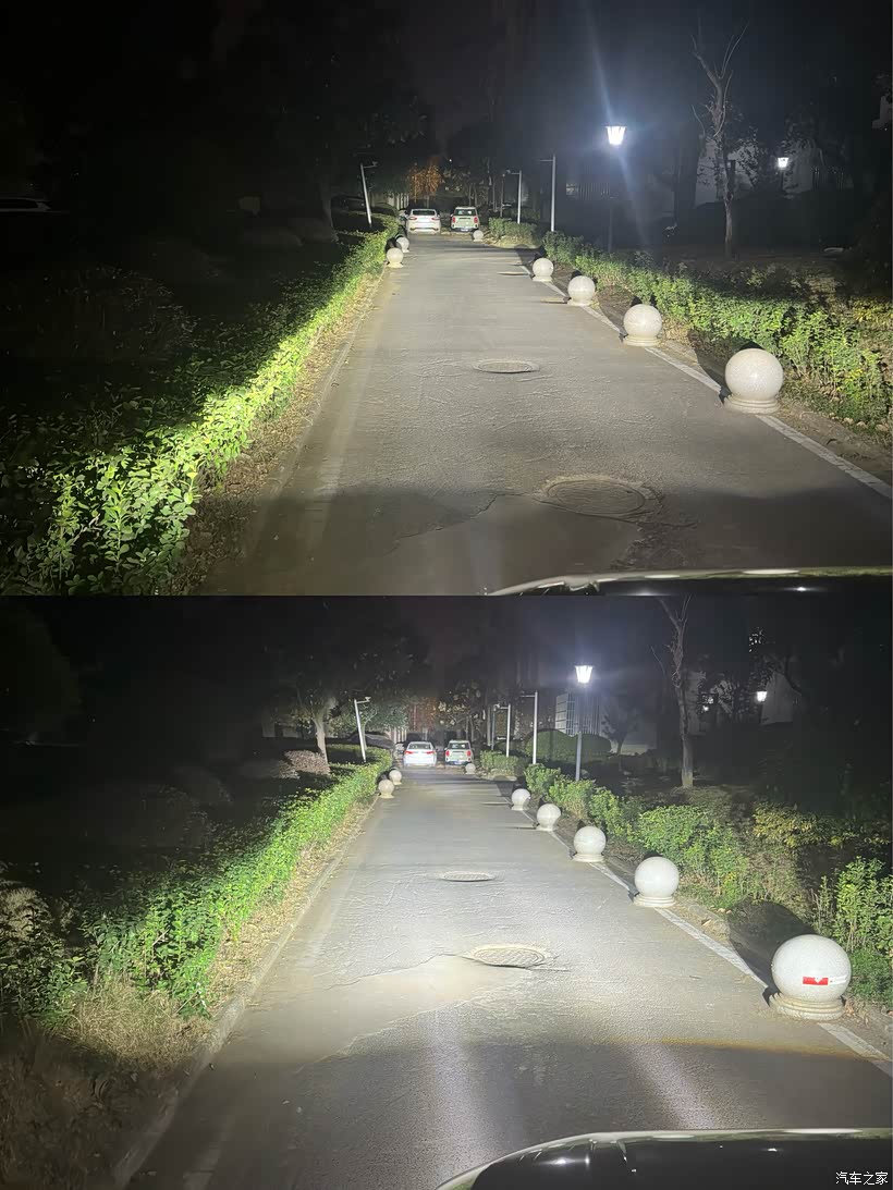 最后再提醒一句,升级灯光一定要选正规品牌和专业的施工店,这样才能保证效果和安全,毕竟夜间行车,灯光就是我们的第二双眼睛啊!最后看一下灯光对比吧!
