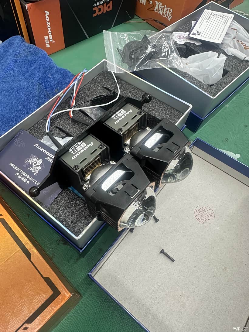 下单之后没几天,货就到了,联系了之前车友群里推荐的一家专业改灯店,约好了周六一早过去施工。一大早我就开着我的瑞虎8 PRO直奔改灯店,老板看到我带的澳茲姆麒麟T系列,说这个牌子口碑不错,他们也装过不少,让我放心。