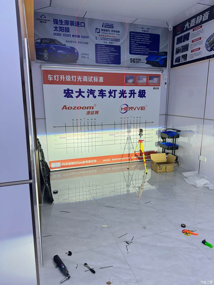 调试的过程比我想象的要复杂得多,师傅拿着水平仪和卷尺,一点点调整模组的高度和左右角度,一会儿钻进车里调车内的灯光高度旋钮,一会儿又跑到车外看墙上的切线。他说近光的切线一定要平整,不能太高晃到对面来车的司机,也不能太低影响照射距离;远光则要保证射程和覆盖范围,这样夜间跑高速的时候才能看得清清楚楚。