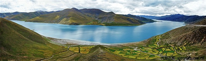 拍摄羊卓雍错可在山上公路边。羊湖在山口处举目远望,远处是银色的雪峰,脚下的羊卓雍错仿如仙女撒在山间的飘带。湖糊边是一片片的草场田野和藏寨村舍。羊卓雍错湖由于水的深浅不同和云影光线的变化,湖水呈现出层次丰富的各种颜色,湖的形状又与周围的草地、田野、山峦形成“你中有我,我中有你”的独特风格。在甘巴拉山口拍羊卓雍错,可用广角头拍攝全景,也可用长镜头拍湖景的局部。