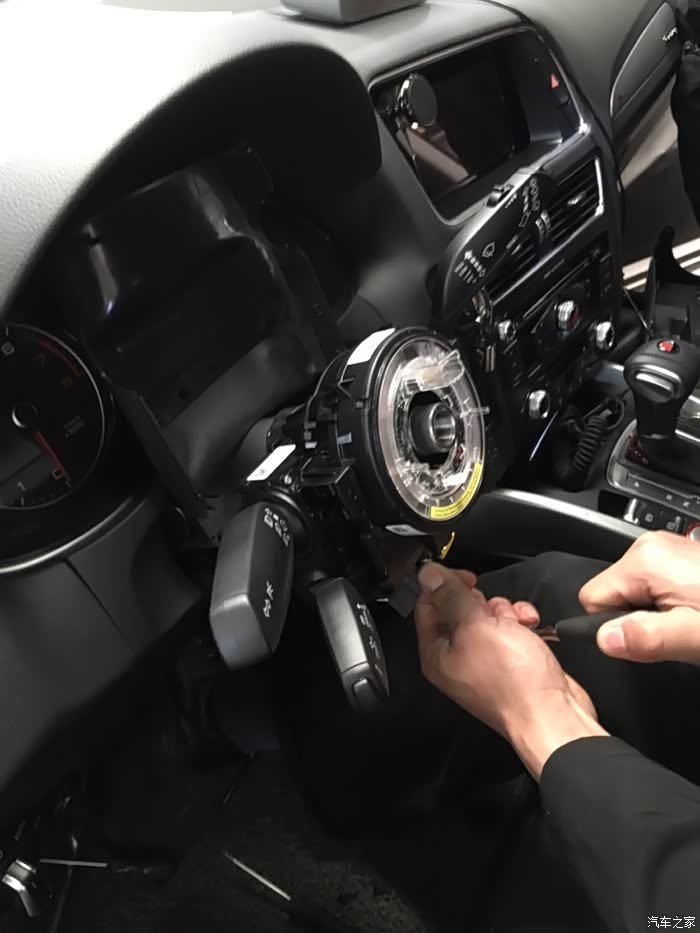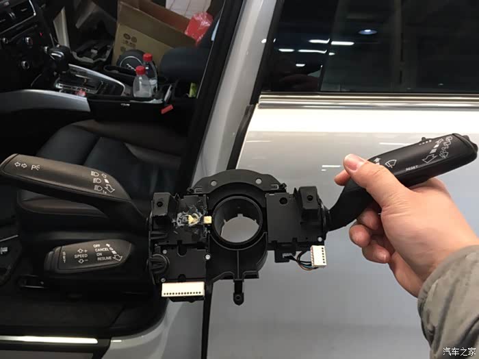 大概3个月前,不经意注意到了这个异响,查过网上,不少人反馈过这个转向异响的声音。上次到改车店的让店里的师傅帮忙给涂了一些润滑脂,声音有所减轻,大概一周左右就又恢复到之前那样每次转向都有声音的程度。异响的根源是下图中的那个转向灯杆回正机构件。