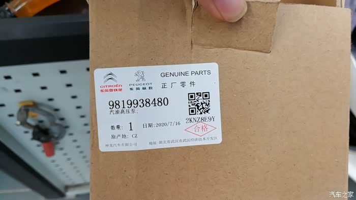 半个月前,故障又出现了,并且等红灯时停车再开加速无力,就像车要没油一样,故障灯也亮了。前几天到4S读取故障码,P0087,高压油泵挂了。还好在延保范围内,厂家订货今天到了,赶紧就去换上了。话不多说立马上图。