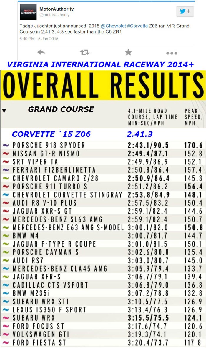 再看看官方公布ZO6 VIR赛道成绩 (她的纽北成绩还没有,让我们拭目以待吧)