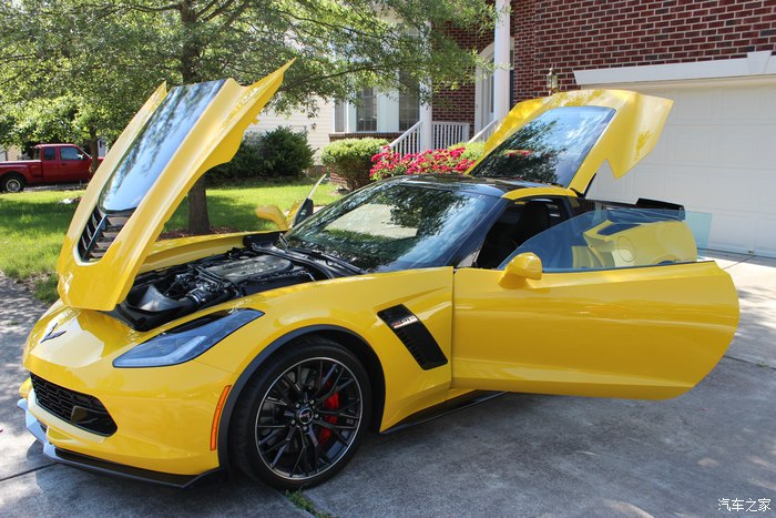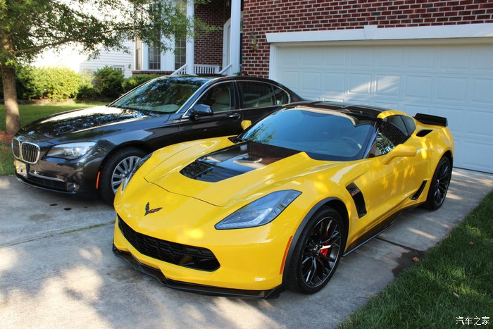 闲扯了这么多,来谈谈本人订车经历吧,从去年(2014)年初就开始关注ZO6, 一直等价格和最后产量版信息。等呀等,终于在去年9月初得知价格出来了(起价$78,000美刀,白捡吗。。。?,期间通用有一个统一加价$1000美刀),而且Dealer(4S)开始接受订单了。于是和老婆兴奋的直奔Dealer下单。没想到这车火的一塌糊涂,dealer的配额都被抢光了,那个沮丧啊!说实话,我这边的这个dealer在附近3个州算是最大的了,2015年就有30多辆ZO6的配额,对比有的小dealer一辆都没有,或者只有一两辆,我运气已经不错了。。。最后和dealer四磨硬泡还是把自己给硬挤到队伍的最尾巴。。。就这样从去年九月份一直等待。期间要感谢坛子里的”退役“元老豆腐帮忙解答了很多问题,还为我提出了很多能尽早提到车的方案,包括为我提供现车和购买途径,不过因为本人对配置的一些苛刻要求最终未能提前提车。在此还是万分感谢豆腐弟了!!! 今年三月初终于排到下单了,当时很兴奋毕竟那个无期的等待结束了。而且得知我选的急速黄(Velocity Yellow) 马上要停产了,我赶上的是最后一批急速黄, 好幸运。 从订车到提车一共两个半月时间,很满足了,算是快了。车上每一个选配都是自己和媳妇按我们的喜好订的,她是属于我们自己的Vette!!