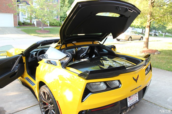 ZO7 运动套件(本车未选此套件) $8,000 美刀,必须在选第二 或第三空气套件才能选,ZO7套件是为跑赛道车友备至的一套加强运动套件,选装了ZO7车的悬挂会更硬朗,车前唇两侧的眉翼会更大,从而产生更强的下压力. ZO7 套件还包括了最抢眼的碳陶瓷刹车,从而比普通ZO6减轻10.5公斤,这是超跑级别必备武器。前285后,335的轮胎也从米胖子的Pilotsuper sport 进化成 米胖子半熔车胎sport cup 2(夏天专用胎,冬天会很硬很滑,这种胎几乎没有胎纹,更换成本很高,听说每6000 到 8000公里就要换,而且价格不菲)ZO7套件的尾翼中间部分也加上了一块透明的尾翼(这样会给驾驶员更好的后视)产生更大的下压力。