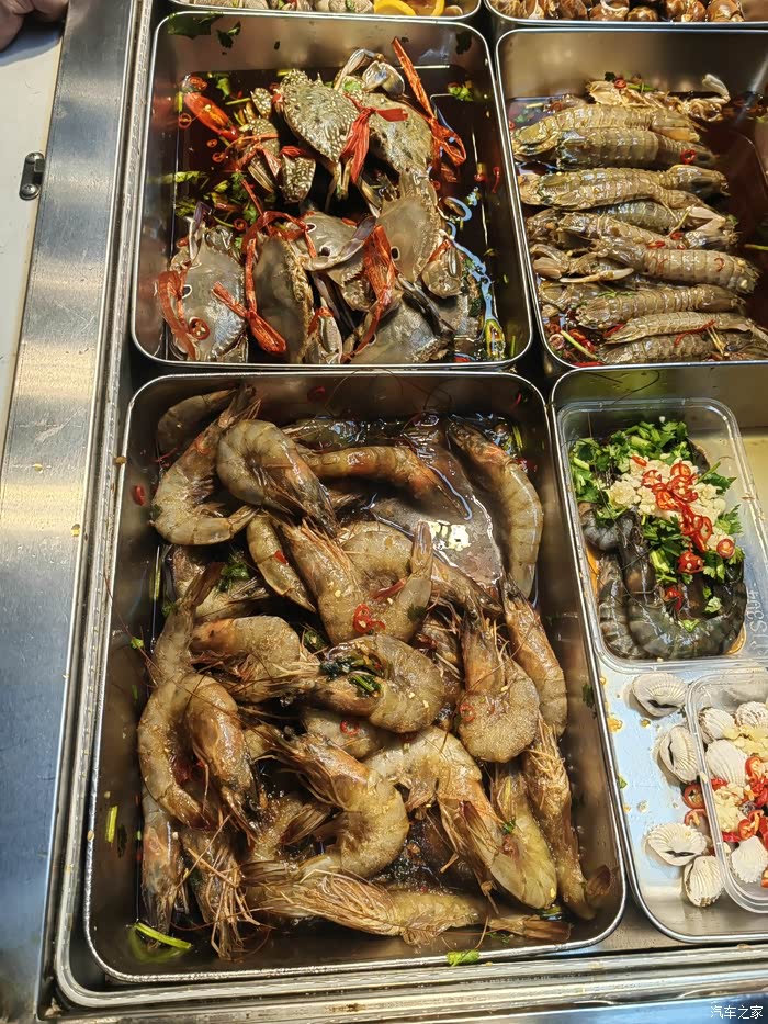 游戏了大半天时间。时间来到了用餐时间,洗澡换上干净衣服,带上小零,导航设置“巽寮海鲜市场”,此刻再一次表扬小零入门即长续航的500公里,在经历了三条高速公路后依然余存200多公里续航,于是很放心地在当地寻找美食!在经历数公里车程后,时间到了傍晚,在巽寮海鲜市场的现场购买生蠔、花蟹、软蟹、濑尿虾等等,在附近餐厅现场烹饪,一盘又一盘美味佳肴。