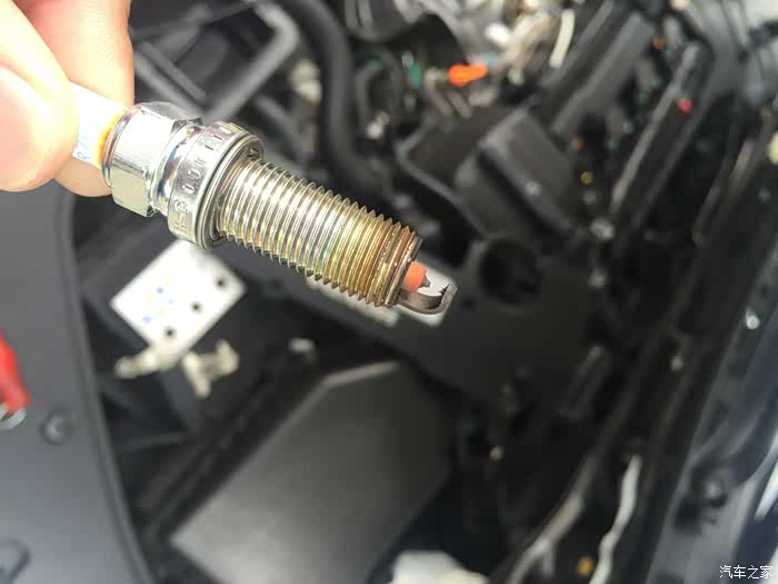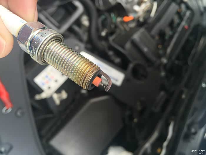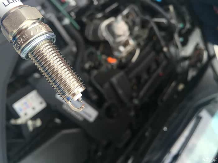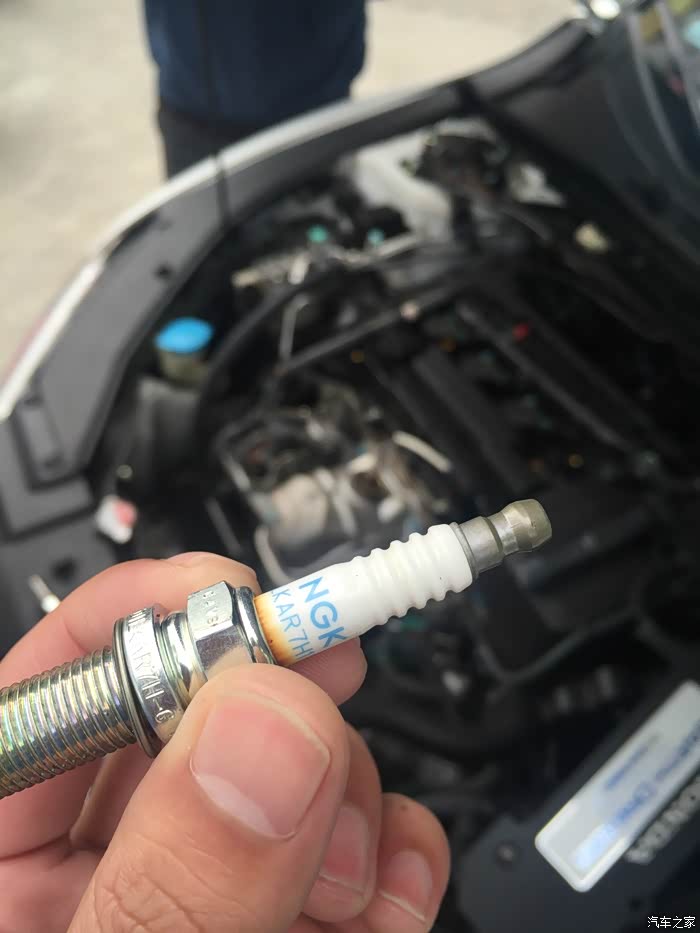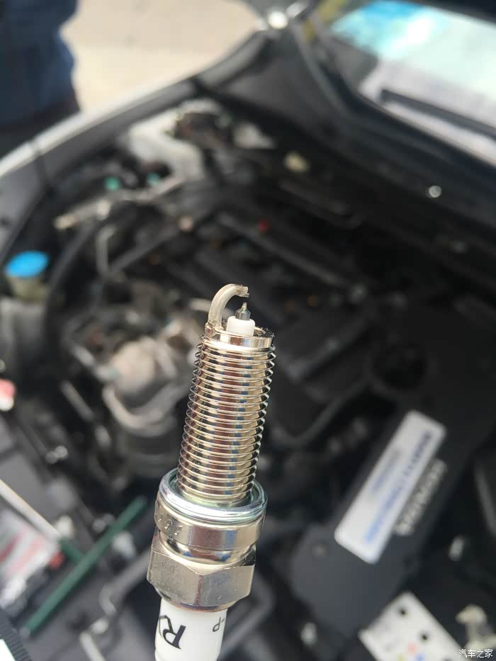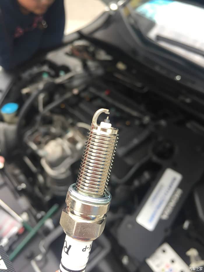 看新换的NGK,针头应该是0.6的,新车的火花塞7度针对针其实也不错哦,可以跑个8万公里再换也不迟的。