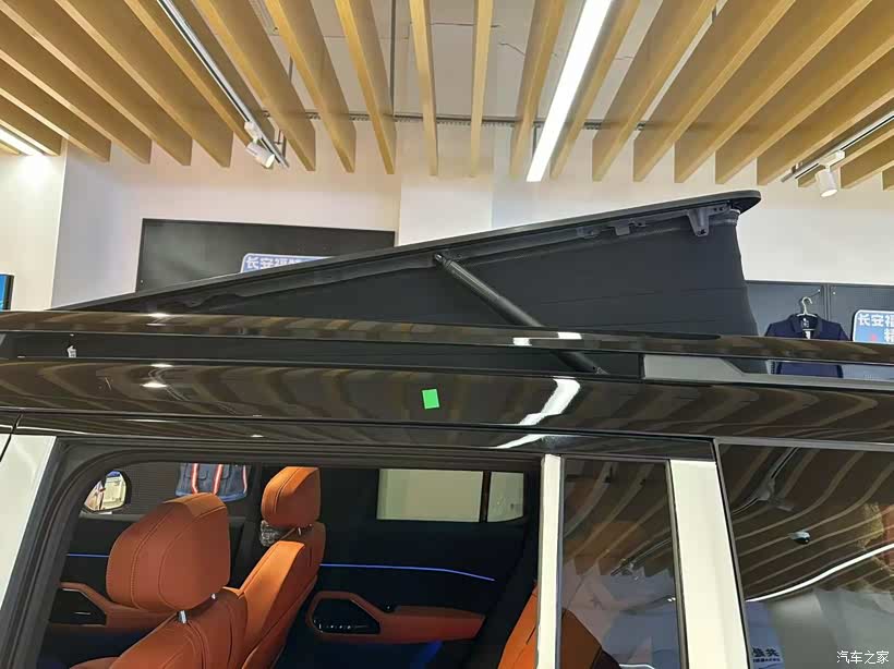 看了下这个天窗,是电动升顶式的,也就是可以升上来,停车露营坐在车里,变相增加了车高。