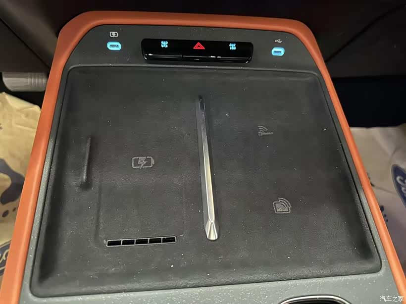 后排有两个type-c的充电口,这个本来应该放后排空调调节的地方因为有冰箱,不知道后排去哪调节空调。