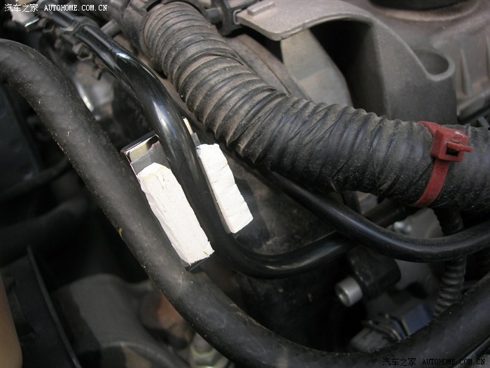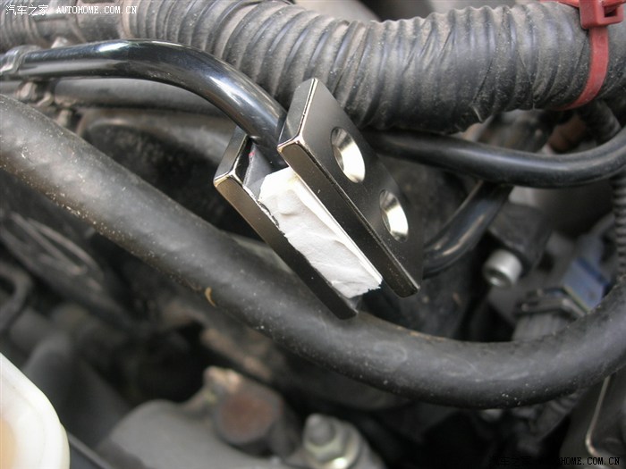(后来发现不太理想,因为此处油管加了磁铁重物,当发动机启动后油管和磁铁震动较大!不佳!)