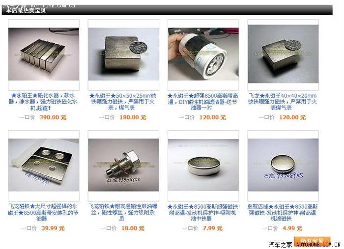 不得不承认,我所有的改装用品几乎都是来自淘宝,这次用的磁铁也是来自“飞龙磁铁专卖”网店,39.99元一对,号称磁力高达8500高斯,算是该店的拳头产品,看评价反馈效果不错,所以我也弄了两对回来试试。